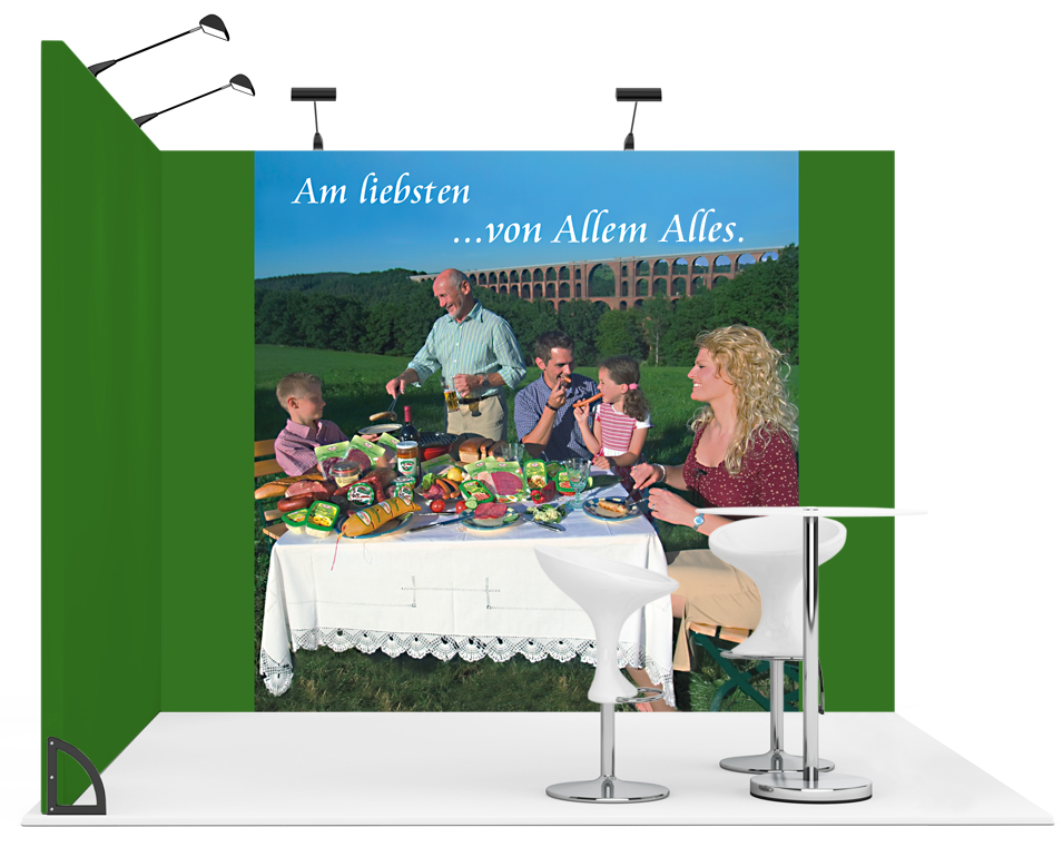 Zusätzlich wurden Verpackungen mit Oberfolien und Messestände gestaltet.