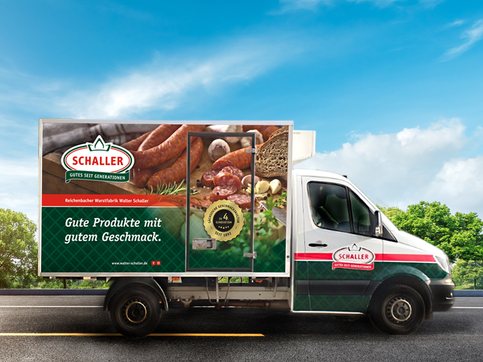 Im Zuge eines Design-Wettbewerbs erhielt pinkuin reklame den Zuschlag, für die Reichenbacher Wurstfarbrik Walter Schaller Inh. Ralf Schaller e. K.