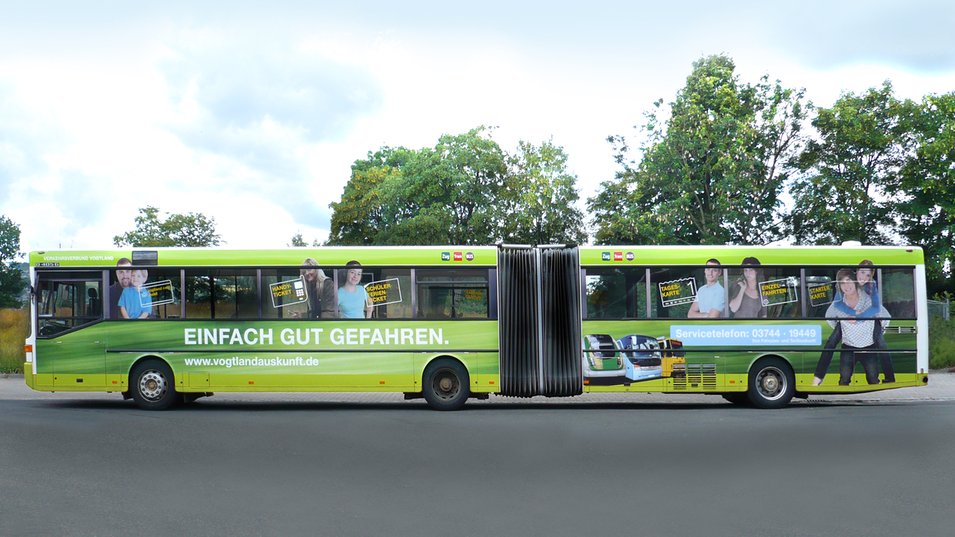 Mehrere Busse wurden von uns in den grün-gelben Farben des Verkehrsverbundes foliert.