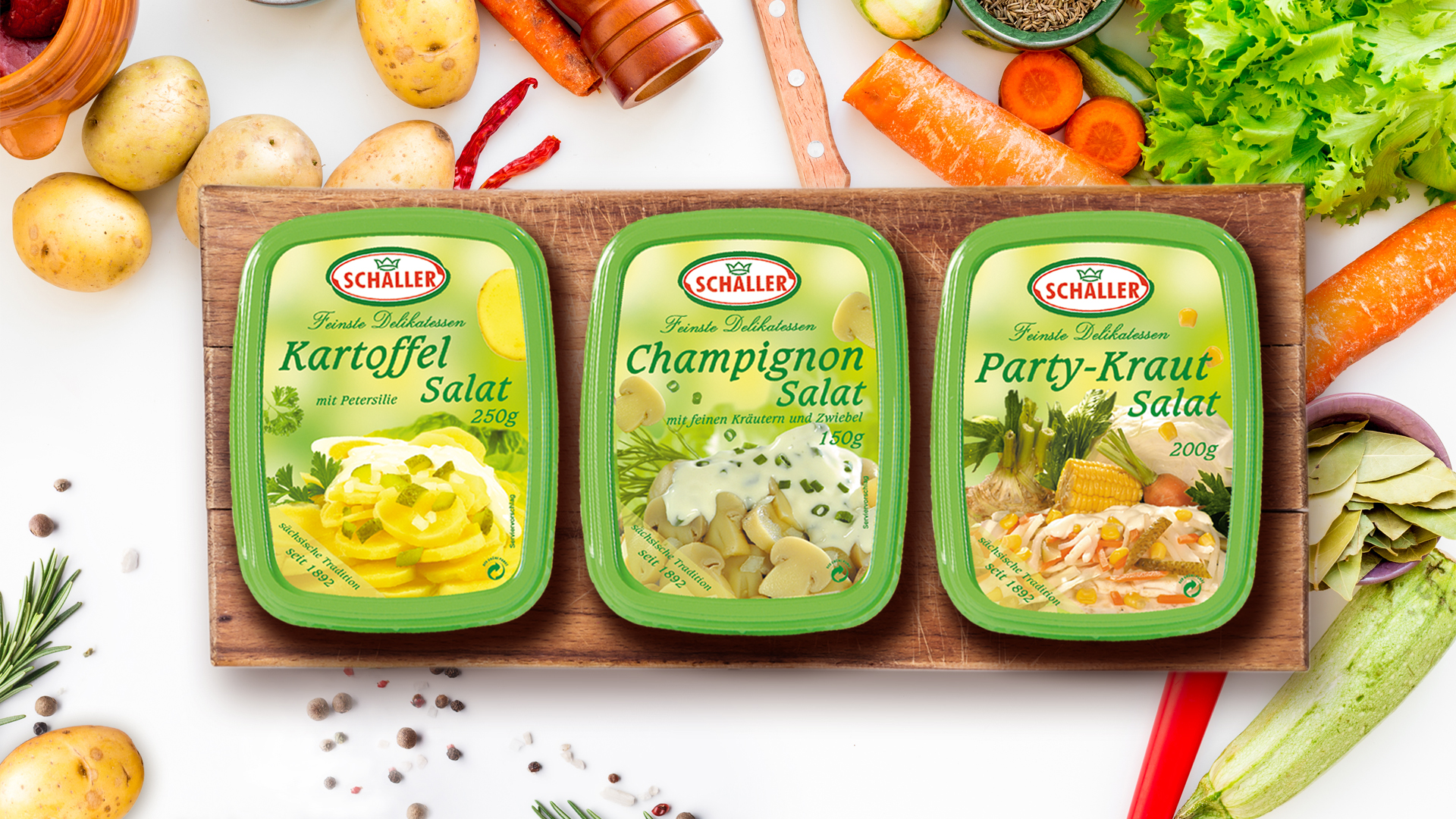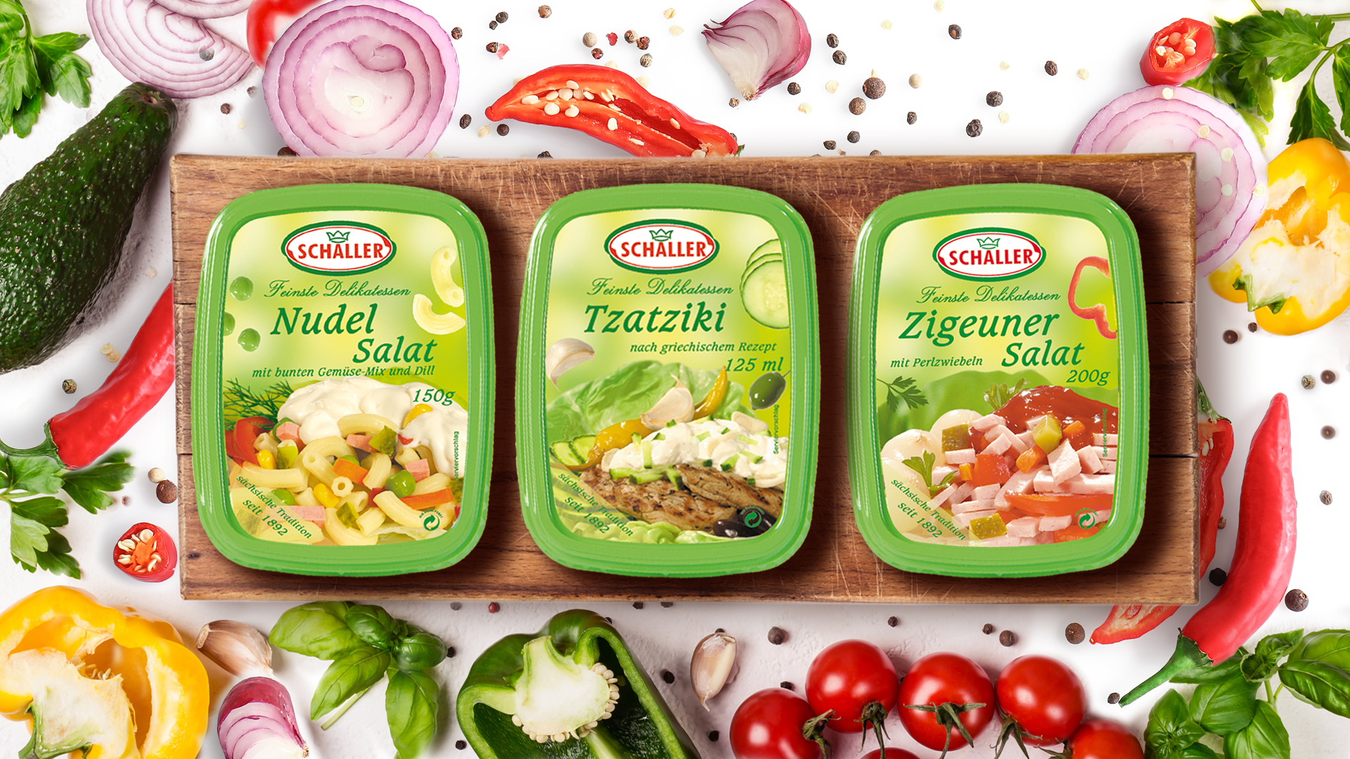 neue Etiketten für die Feinkostsalate zu gestalten. Es entstanden 15 Etiketten sowie eine neue Wort-/Bildmarke.